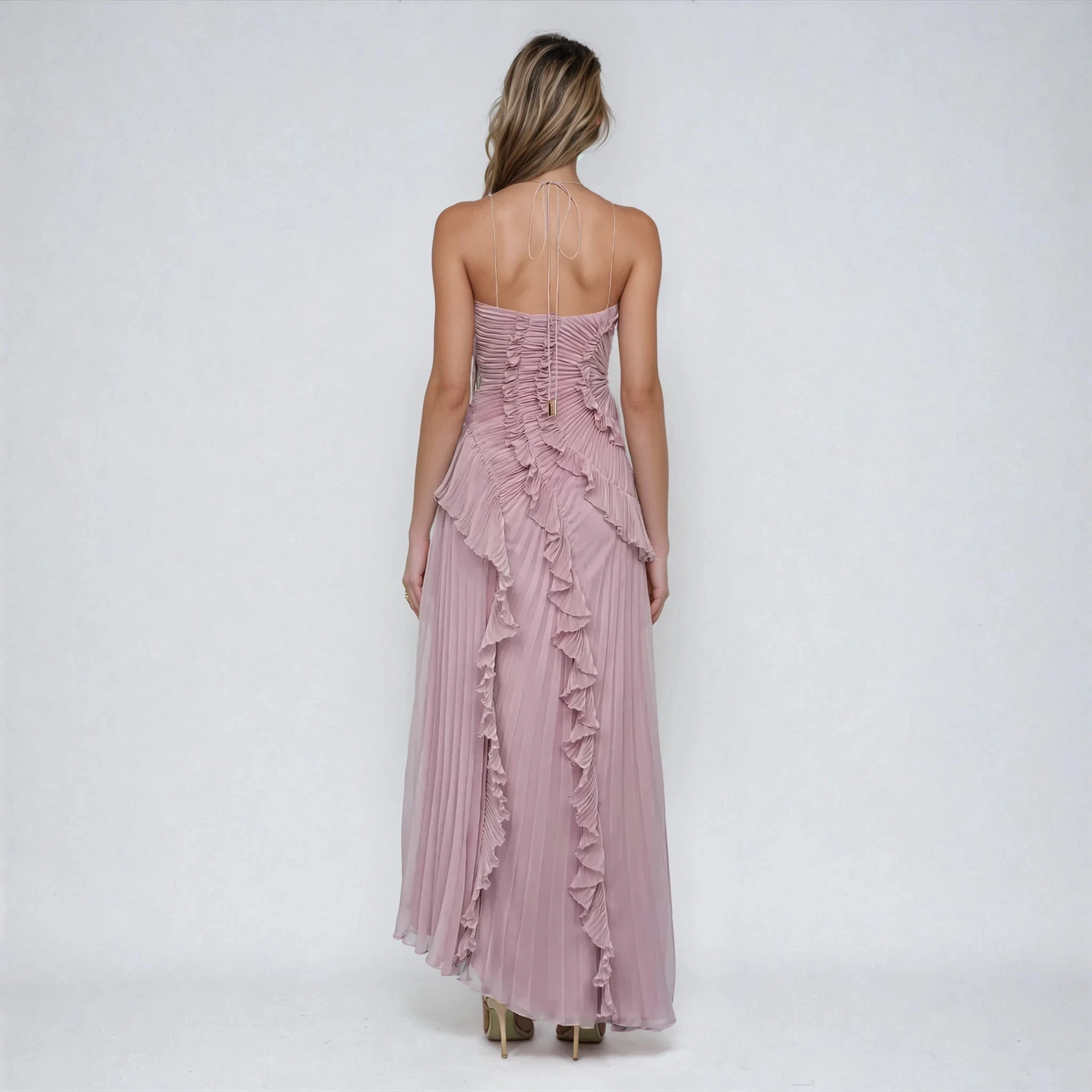 The Brélyn™ Dress is where delicate detail meets graceful structure. With cascading pleats and soft ruffle accents, this halter-neck silhouette is designed to move with you – whether you're floating through a summer soirée or lighting up a candlelit dinner.